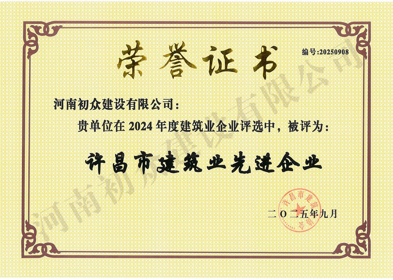 2024年度許昌市建筑業(yè)先進(jìn)企業(yè)