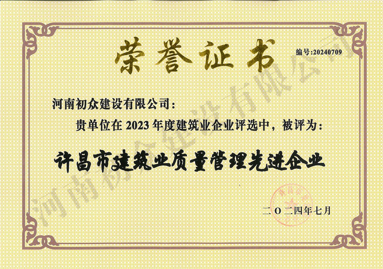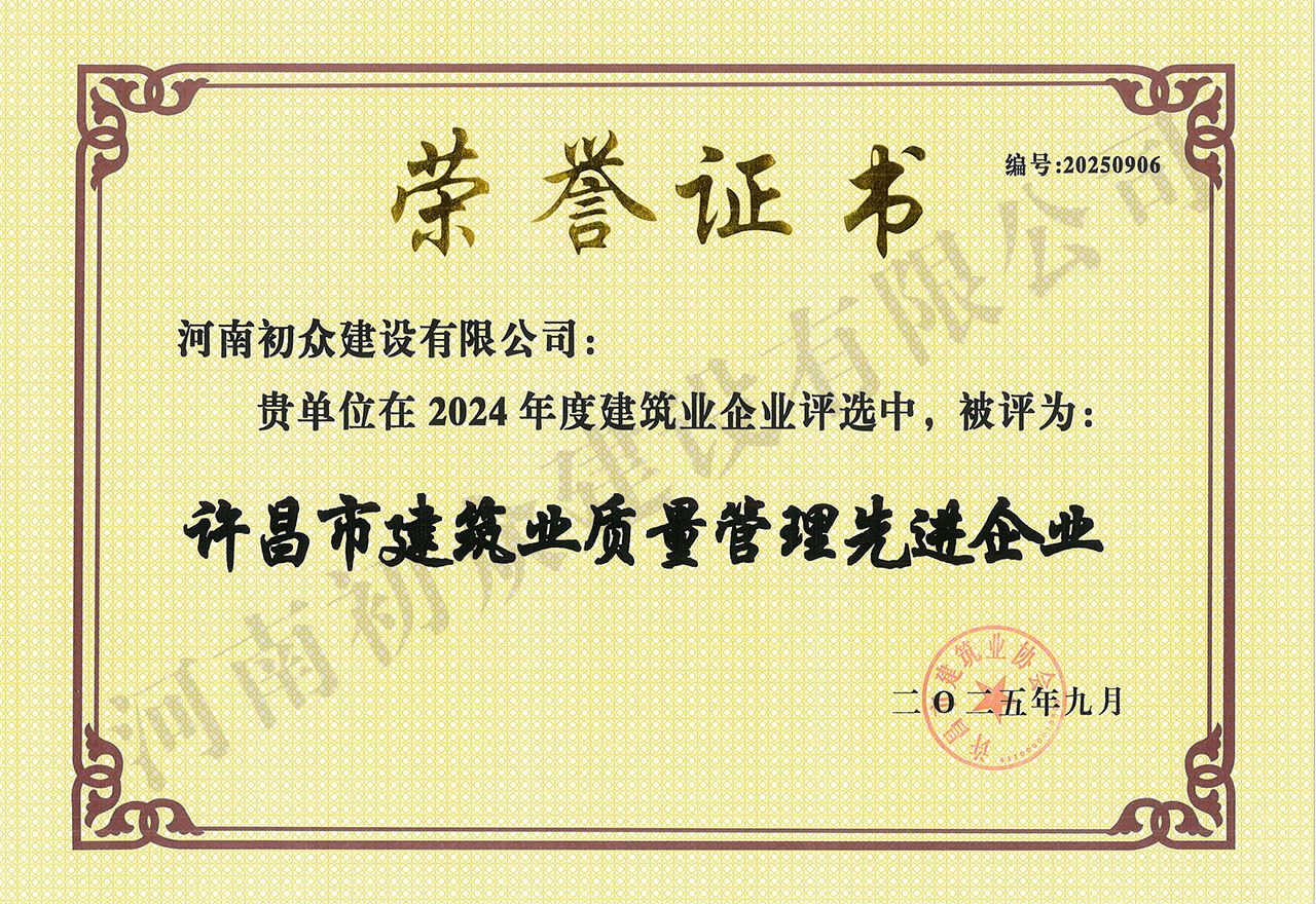 2024年度許昌市建筑業(yè)質(zhì)量管理先進(jìn)企業(yè)